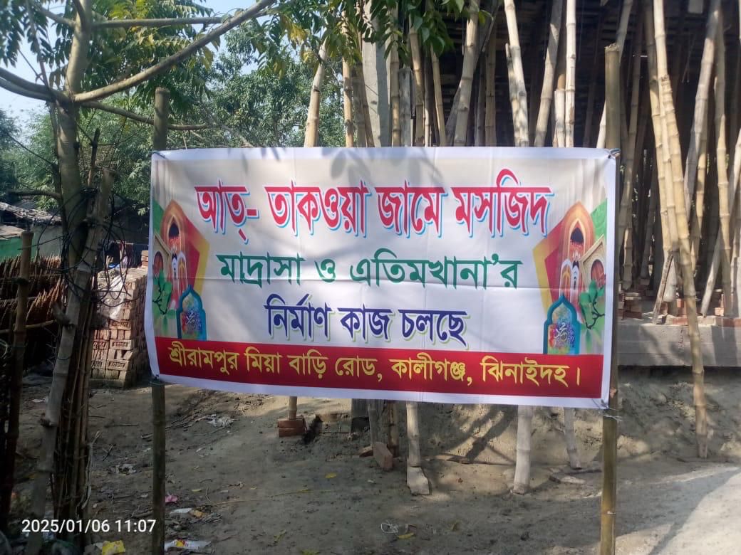 Allah (SWT) gave us a very special opportunity to build a beautiful Masjid in Kaliganj, Jessore, Bangladesh, Alhamdulillah. The work began on December 11, 2024 and has just been completed. We had the opening ceremony on Friday, January 2, 2026, Alhamdulillah.